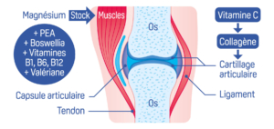 L’inconfort articulaire concerne 9 à 10 millions de Français. Au cours de la vie, des gênes articulaires (genoux, hanche, poignet …) et musculaires (dos, lombaires, cou …) peuvent apparaître. Certains facteurs comme le sport, la fatigue, le stress, les chocs traumatiques (entorse, fracture …), l’excès de poids, l’âge etc. peuvent favoriser l’usure du cartilage et fragiliser les articulations ; ou sensibiliser les muscles engendrant de la fatigue musculaire. Il est donc important d’entretenir son système musculo-squelettique.